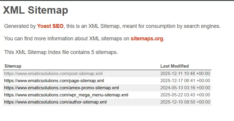 Contoh sitemap XML milik ematic: