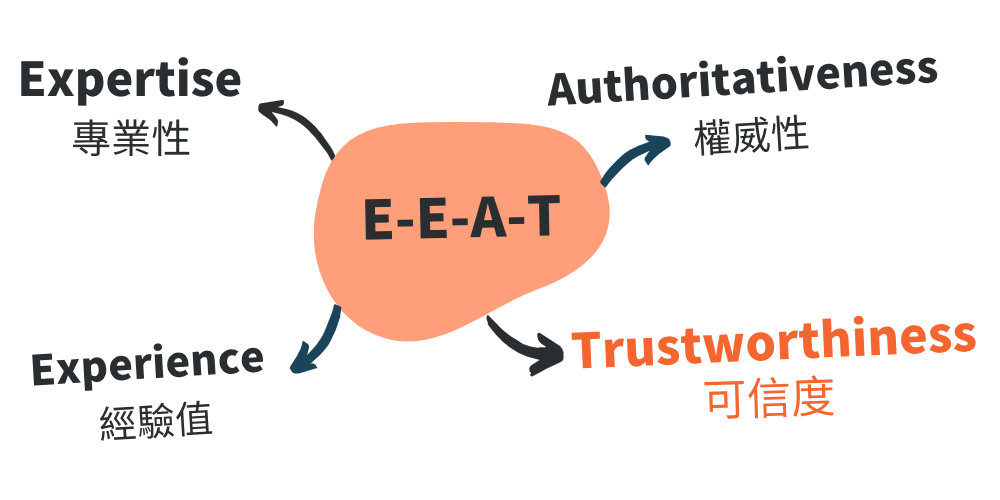 AI 評估網站內容時會考慮 E-E-A-T(專業度、經驗、權威、信任):