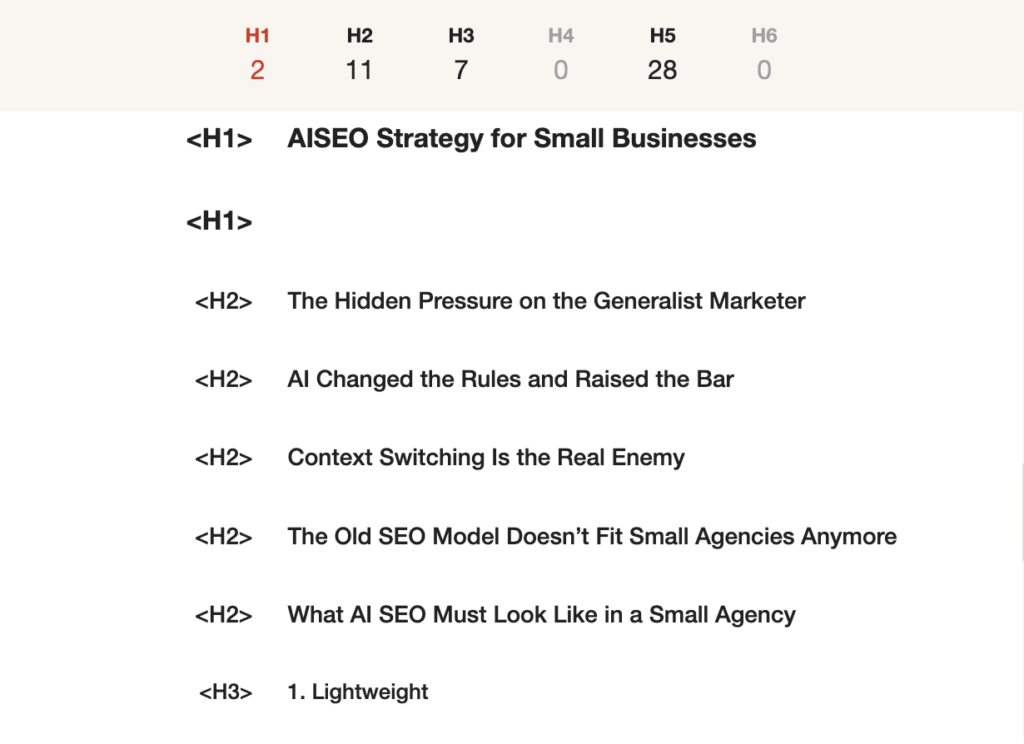 • 每頁僅有一個 H1 標題,幫助 AI 判斷頁面主題