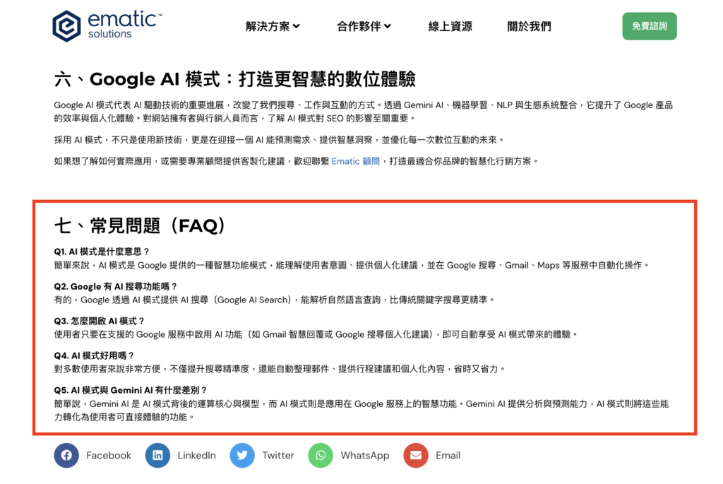 五、關於 AI 搜尋的常見問題(FAQs)