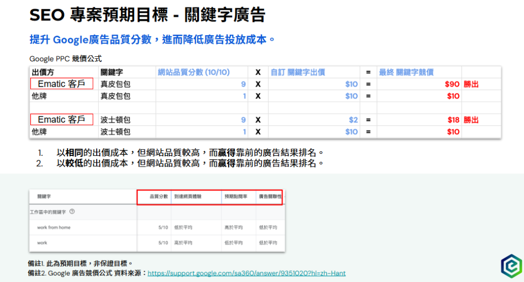 因為網站品質分數較高(SEO權重),可以降低廣告成本,獲得較好的廣告成果。