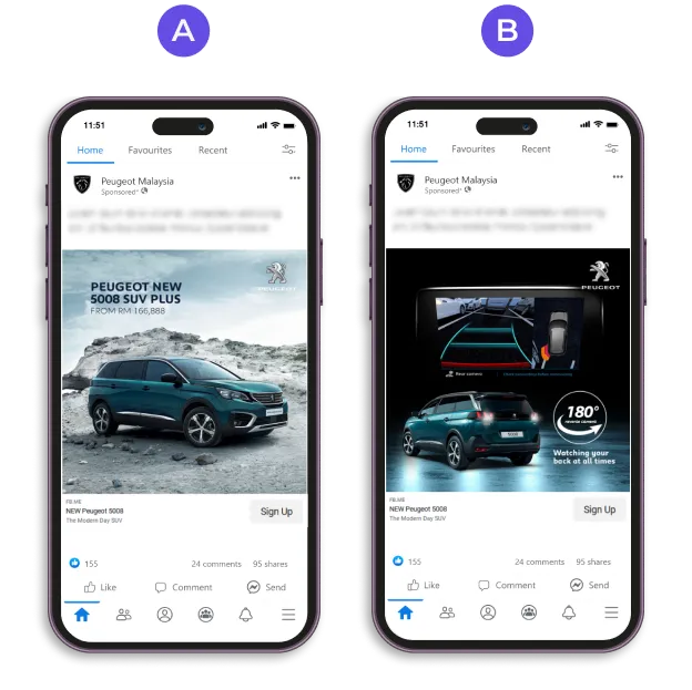 我們會對每個活動進行系統式的A/B 測試,變數可以測試活動、廣告設置、創意&內容訊息等不同等級,找出表現最好的。