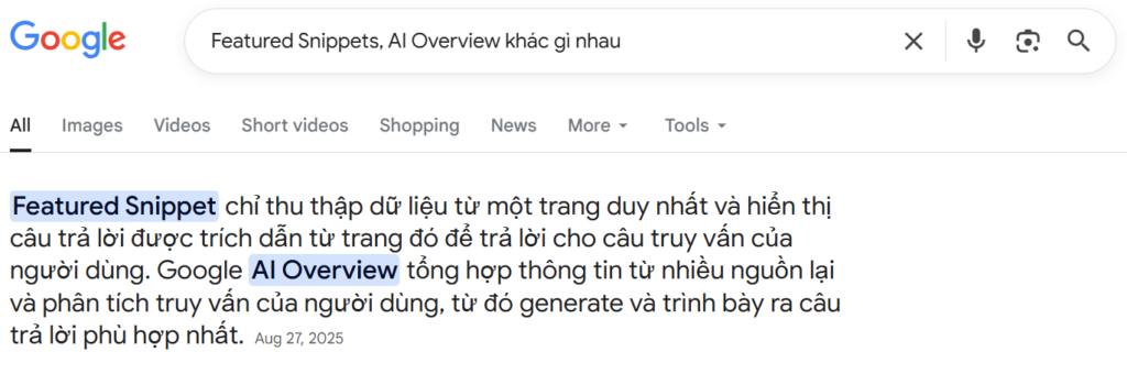7.1. Cạnh tranh trong Featured Snippets & AI Overviews