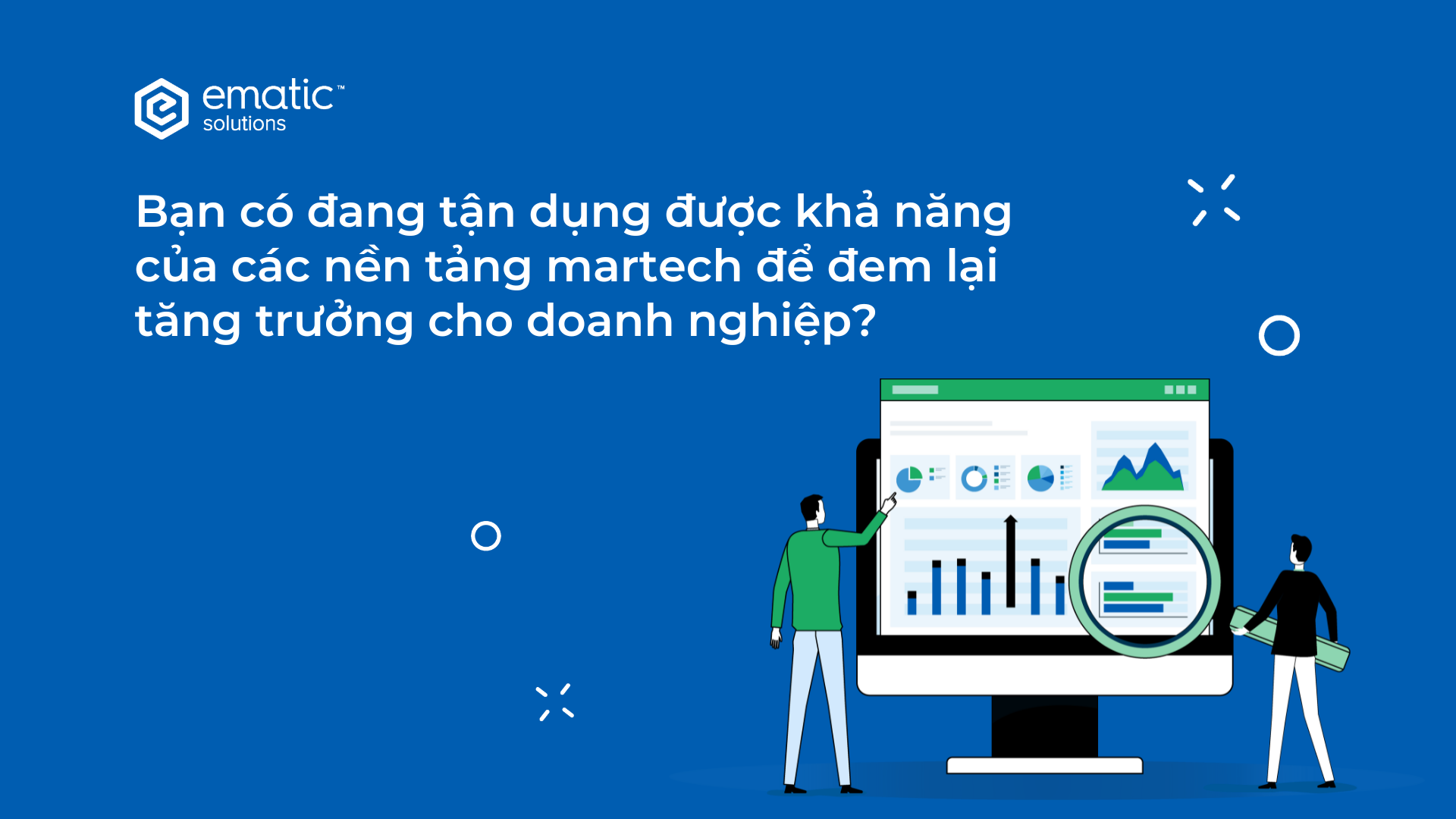Ematic Solutions đã tìm đến những chuyên gia tư vấn về SEO, PM, CRM, SM để tổng hợp các tips nhằm gia tăng hiệu quả hoạt động marketing. Liên hệ với chúng tôi để nhận lời khuyên trực tiếp từ các chuyên gia và tăng trưởng ROI bền vững.
